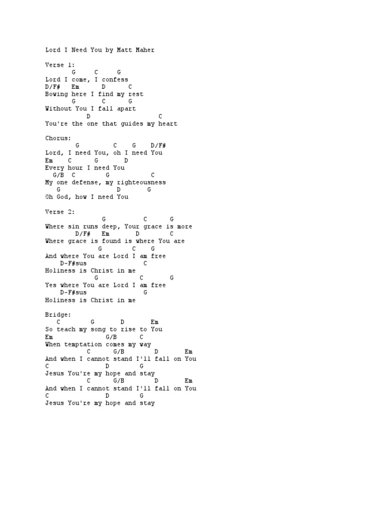 Lord I Need You Chords Pdf Grace In Christianity Song Structure