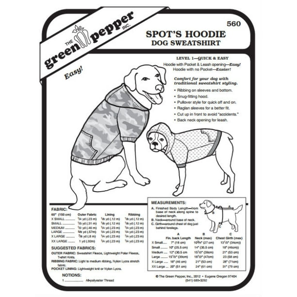 Spots Hoodie Dog Sweatshirt Pet Coat 560 Sewing Pattern Pattern Only Walmart Com
